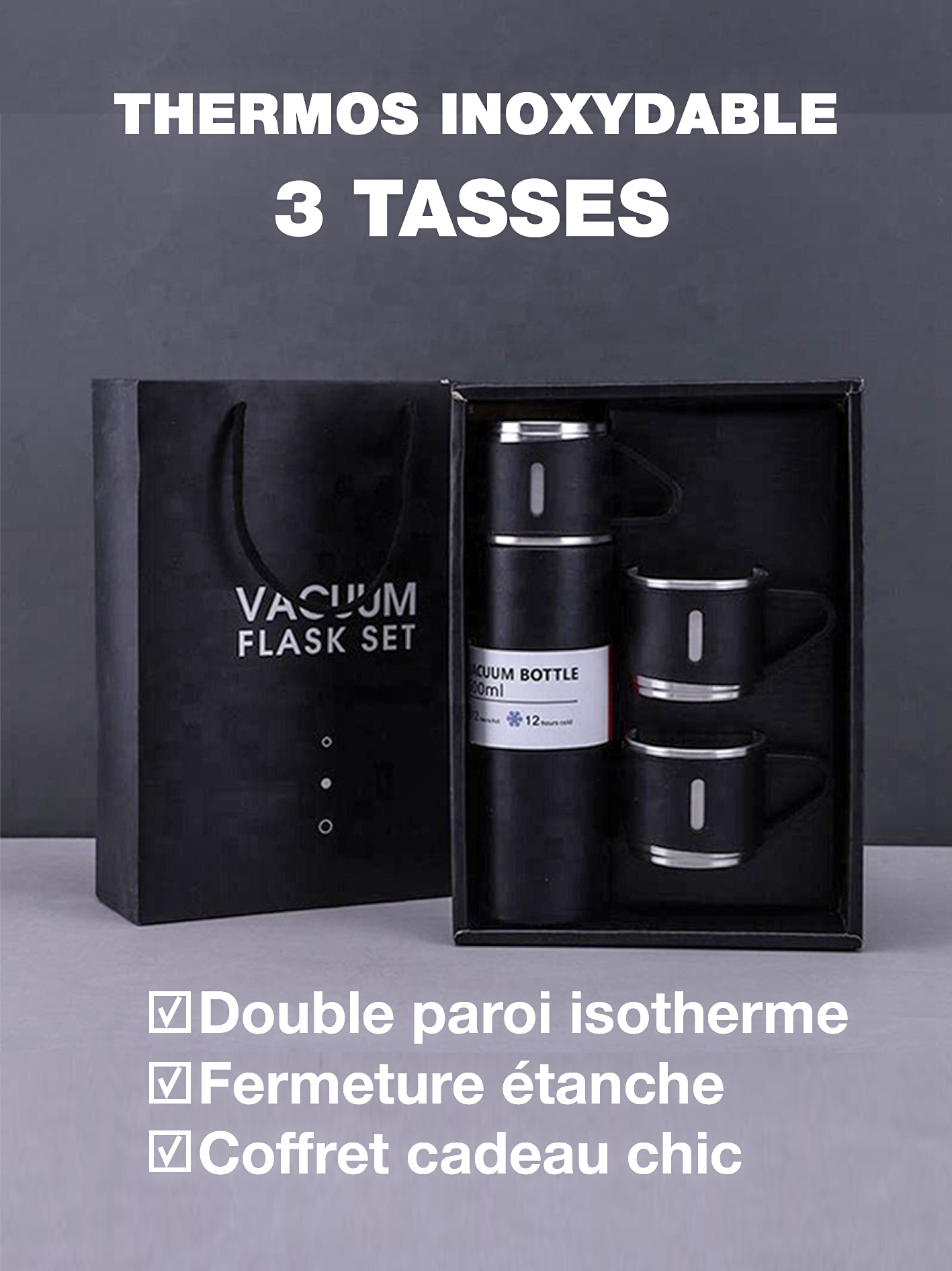 THERMOS INOXYDABLE AVEC 3 TASSES